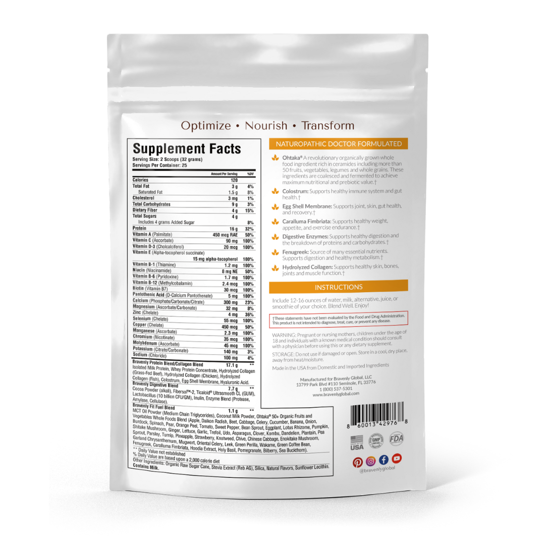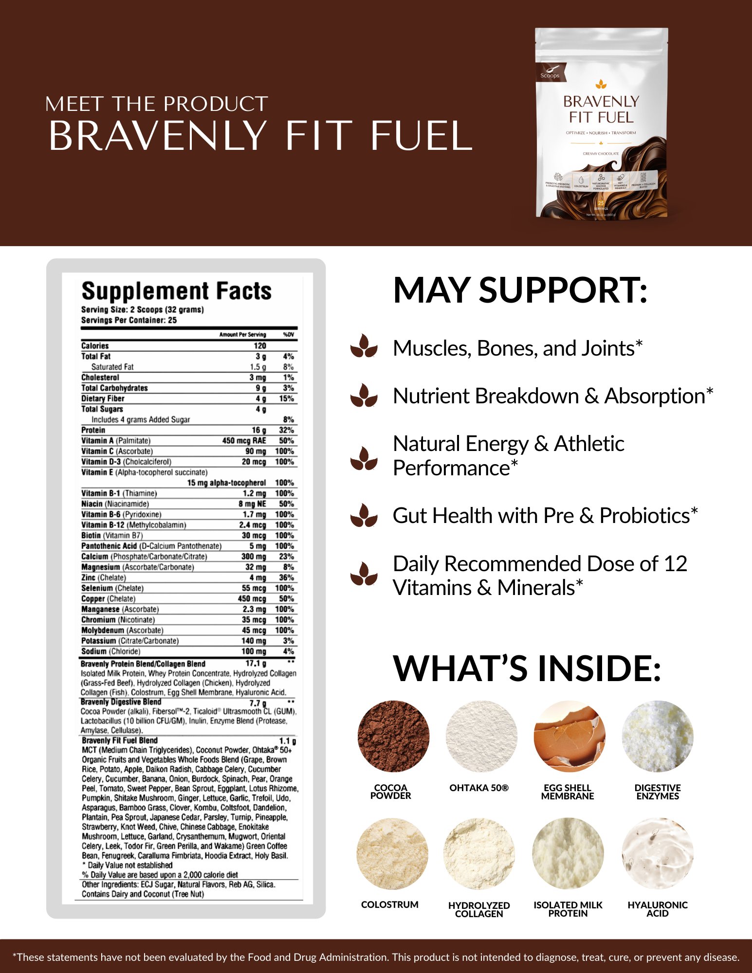 This 3-in-1 multi-beneficial blend is the perfect companion for your health & fitness journey. The three blends (Bravenly Protein/Collagen Blend, Bravenly Digestive Blend, and Bravenly Fit Fuel Blend) work together to amplify your results & transform your health.